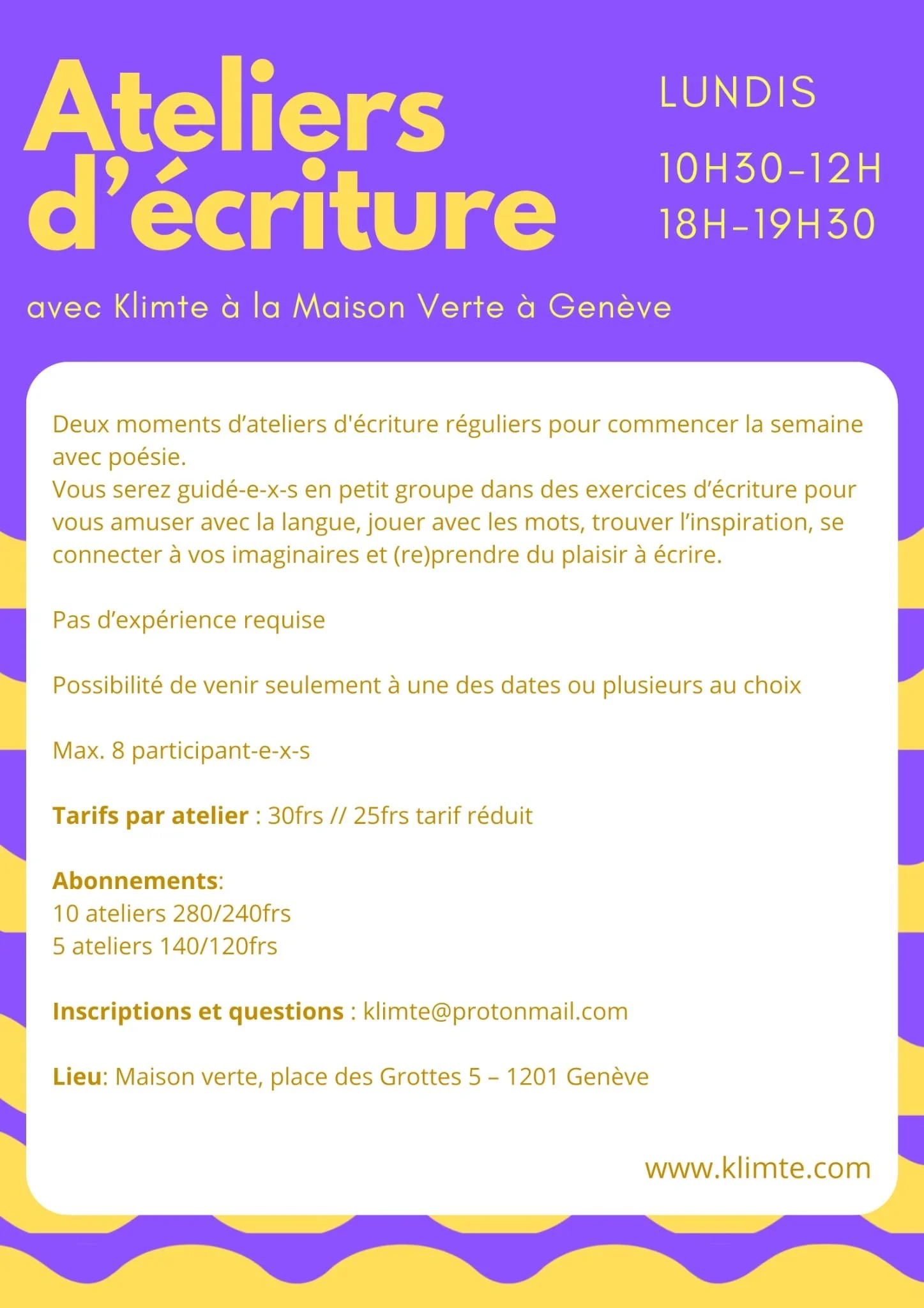 Inscriptions et questions : klimte@protonmail.com