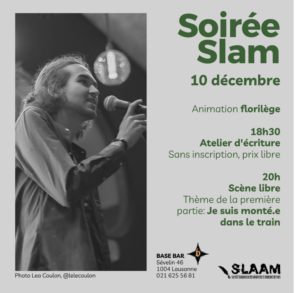 L'assemblée se prolongera ensuite par notre traditionnelle scène libre mensuelle, animée par florilège (thème de la première partie : "Je suis monté·e dans le train").
