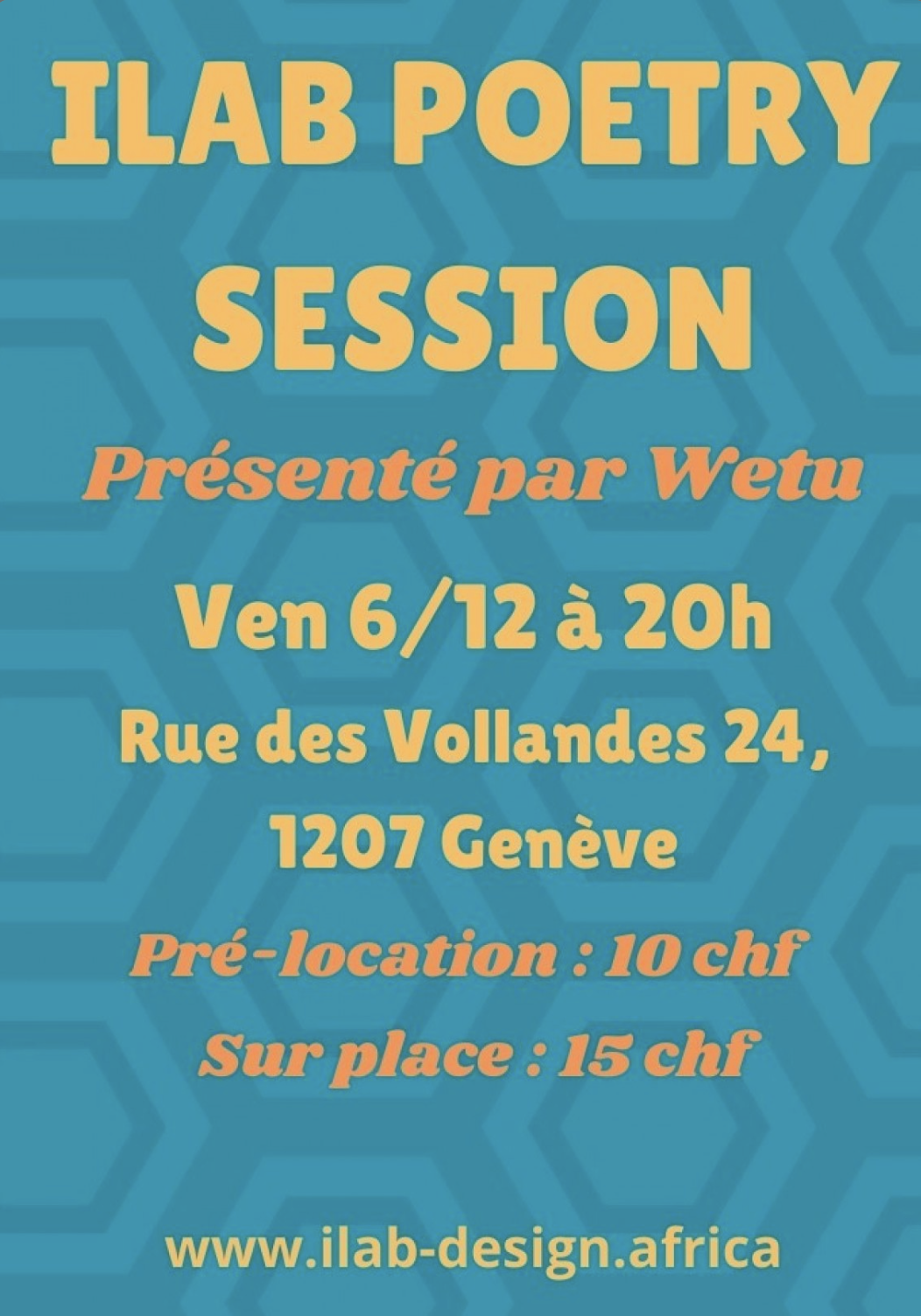 Réservation: https://infomaniak.events/fr-ch/theatre/ilab-poetry-session/686CfEqoeIM9SeplfaQpw91qu1O4