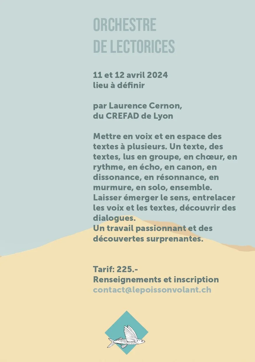 Retour à tous les événements Orchestre de lectorices (Chapelle-sur-Oron VD) jeudi, 11 avril 2024 10:00 vendredi, 12 avril 2024 18:30 Chapelle-sur-Oron Suisse (carte) Google Agenda ICS