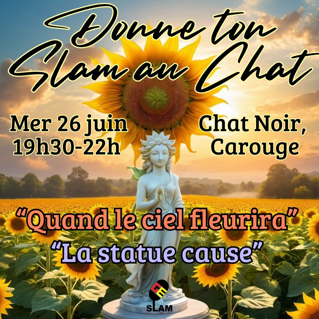 Le comité GE Slam vous propose, comme chaque mois, une scène slam ouverte. Nous t'invitons au bar Chat Noir à Carouge (Rue Vautier 13, 1227 Carouge) le mercredi 24 avril prochain de 19h30 à 22h !