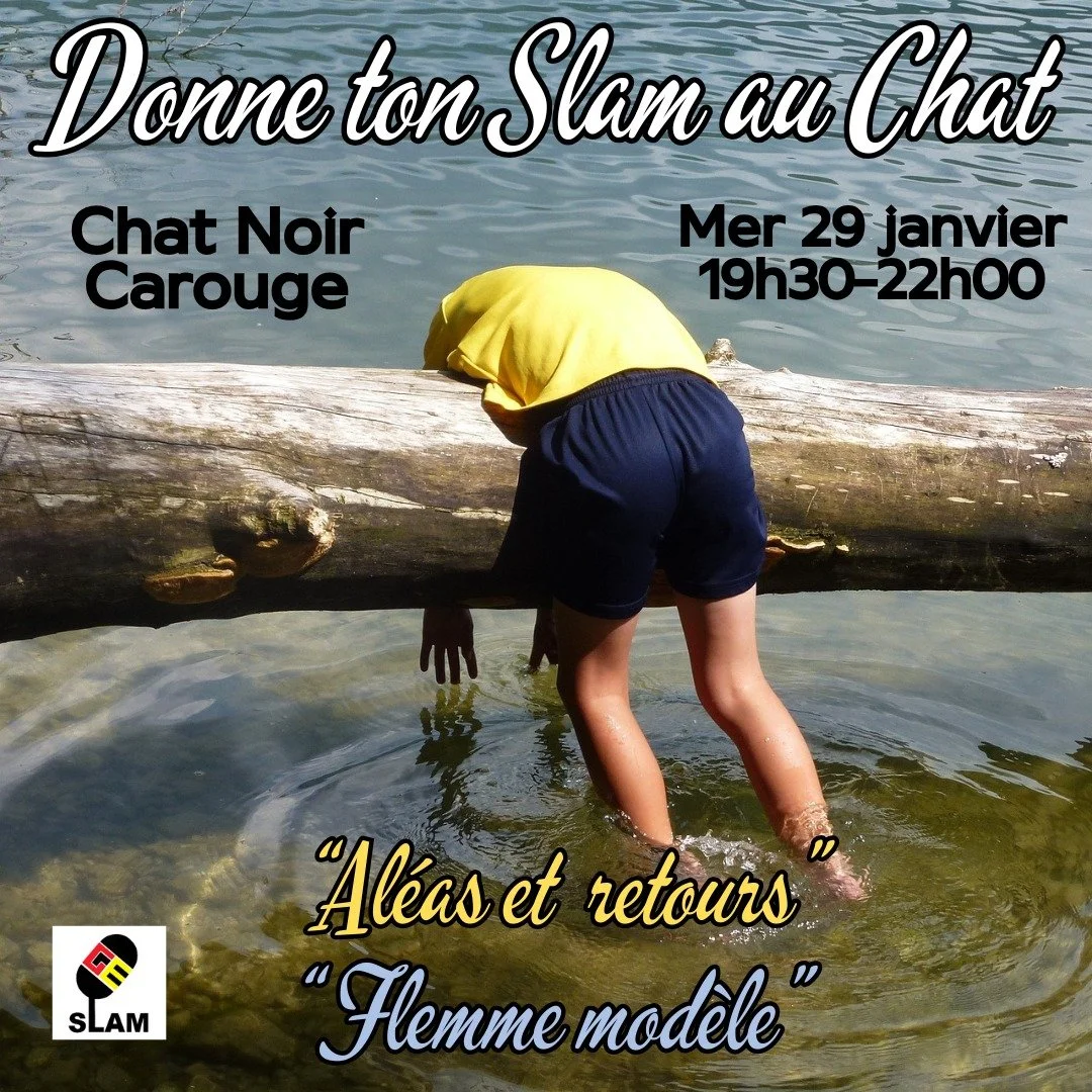 Le comité GE Slam vous propose, comme chaque mois, une scène slam ouverte. Nous t'invitons au bar Chat Noir à Carouge (Rue Vautier 13, 1227 Carouge) le mercredi 29 janvier 2025 de 19h30 à 22h !