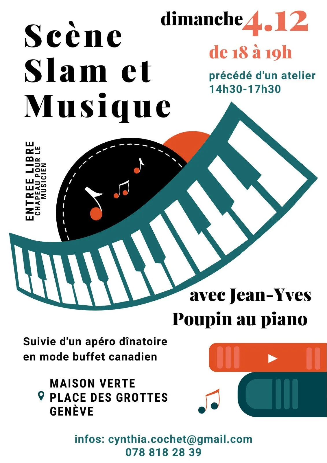 Venez slamer en musique pendant cet atelier et cette soirée du 4 décembre, animés par Cynthia Cochet et brillamment accompagnés aux instruments par Jean-Yves Poupin! Inscription préalable requise pour l'atelier.