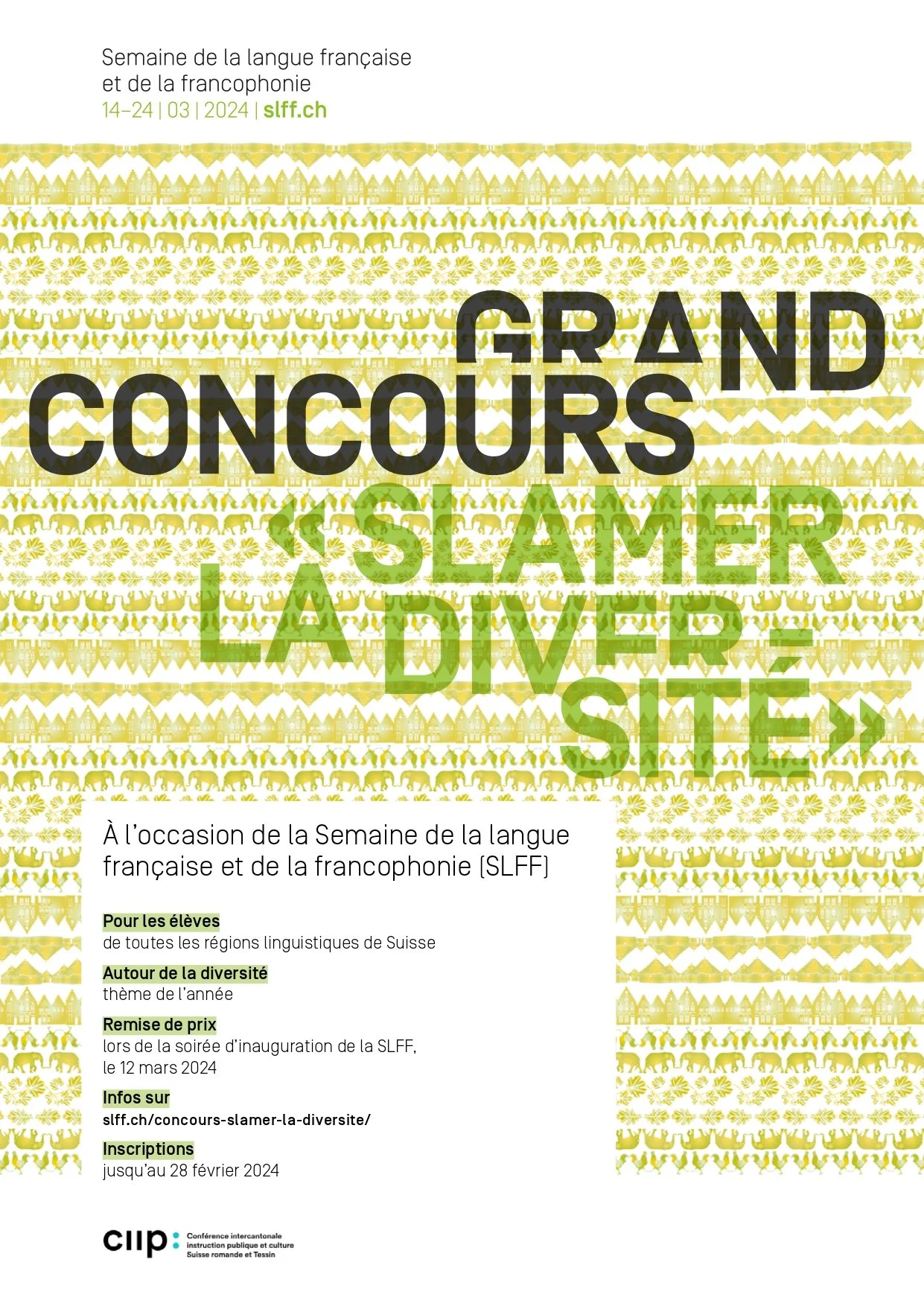 Je vous écris concernant le Concours Slamer la Diversité de la Semaine de la Langue Française et de la Francophonie 2024.