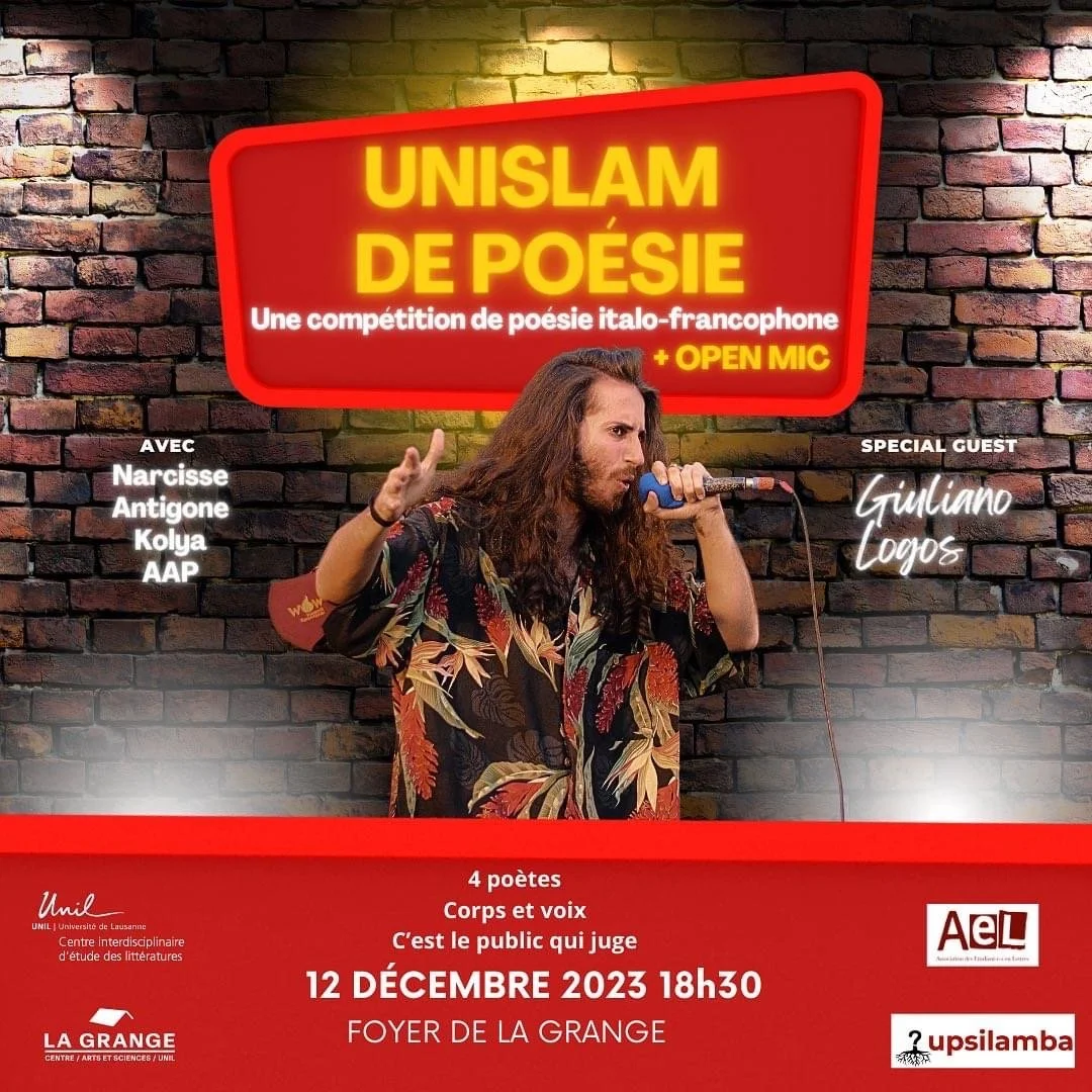 Invité international le champion du monde de poetry slam 2021 Giuliano Logos