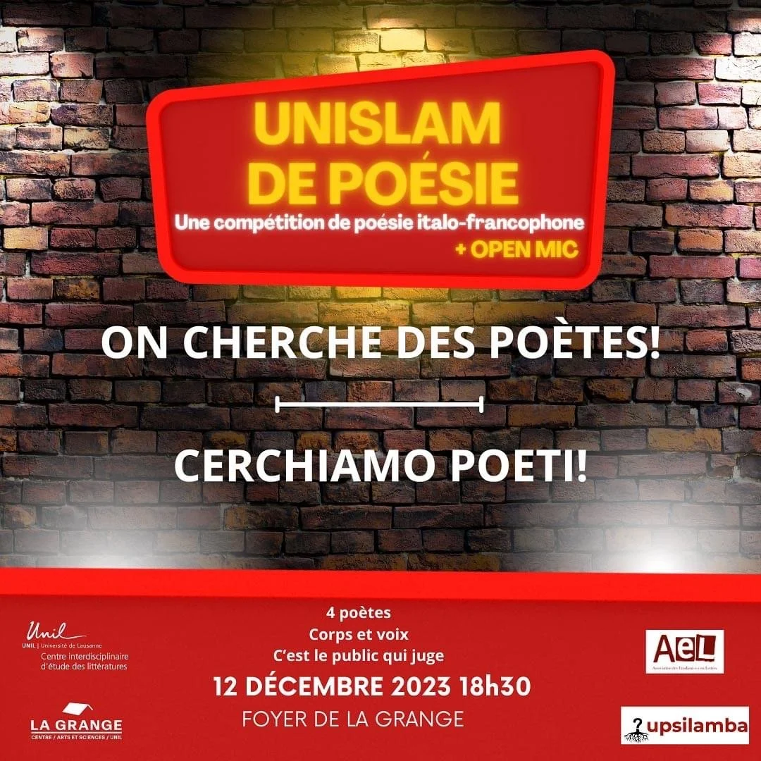 📣Slam de poésie bilingues + scène ouverte! 4 incroyables poètes de la scène slam suisse et italienne se produiront dans une compétition de poésie italo-française. Afin de faciliter la compréhension du public, tous les textes seront traduits en italien et en français. La performance sera suivie d'une scène ouverte à tous ceux qui souhaitent partager un texte sous n'importe quelle forme et dans n'importe quelle langue !